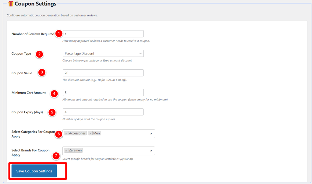 π Review Next β Coupon Settings (Automated Reward System)